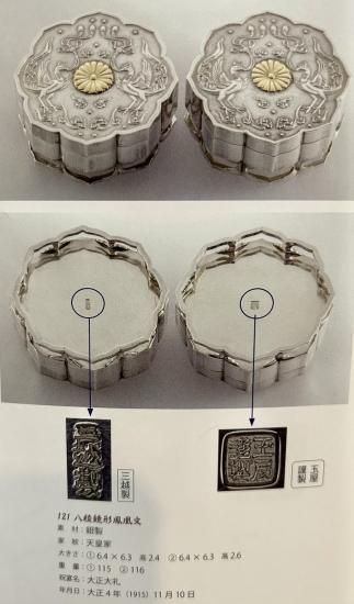 ¤³¤Î°Õ¾¢¤Î¤â¤Î¤ÏÂçÀµ4ǯ(1915)¤ËµþÅÔ¸æ½ê¤Ç¼¹¤ê¹Ô¤ï¤ì¤¿¡¢ÂçÀµÅ·¹Ä¨°Ì¼°¤ÎÀá¤Ë¿ô¼Ò¤Ëʬ¤±¤ÆÈ¯Ãí¤µ¤ì¤¿¤â¤Î¤Ç¡¢Â¼¾¾À½¤Î¤Û¤«»°±ÛÀ½¡¦¶Ì²°¶àÀ½¤Ê¤É¹ï°õ¤Î°Û¤Ê¤ë4¼ïÎब¸½Â¸¤·¤Þ¤¹¡£
